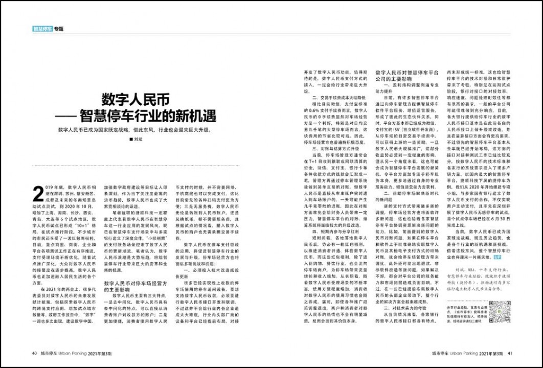 本文刊登在2021年第3期《城市停车》上,原标题《数字人民币——智慧停车行业的新机遇》,经授权转载。作者:刘斌,MBA,十年支付行业、智慧停车行业经验,现就职于捷顺科技(捷停车),推动捷顺与多家银行建立数字人民币业务合作。